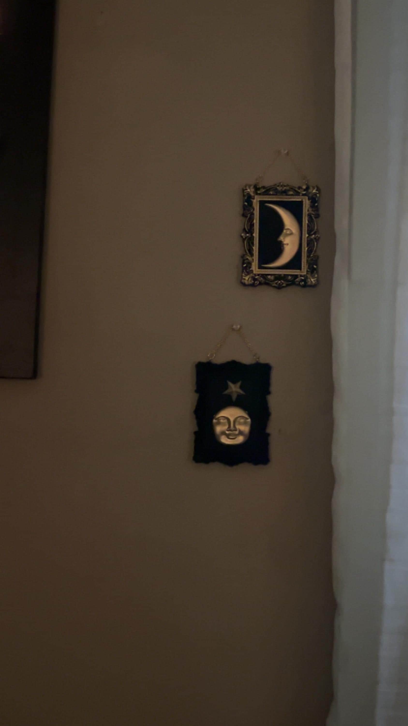 Transform your oddity wall into a captivating haven with my collection of hand-painted stars and moons nestled within charming mini handmade frames. Each piece is a testament to meticulous craftsmanship, adorned with resplendent metallic gold and silver pigments that shimmer with a celestial allure.